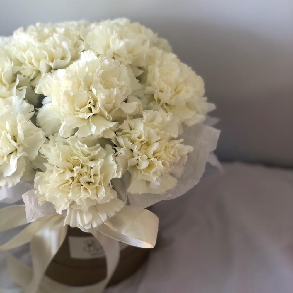 Шляпная коробка – 1 шт.Гвоздика сортовая – 11 шт.Оформление – 1 шт.