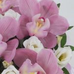 Элегантная композиция из орхидей и маттиолы в коробке. Такой презент всегда уместен и подойдёт для любого повода: День Рождения, именины, годовщина свадьбы, рождение ребенка, 8 марта, День Святого Валентина, выпускной и т.д. Можно вручить маме, сестре, подруге, коллеге, учителю, любимой.