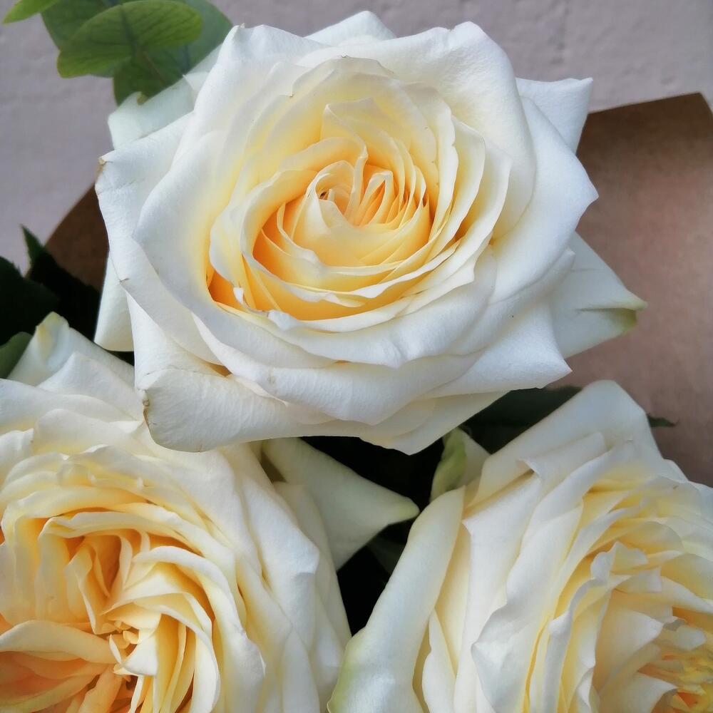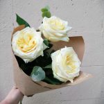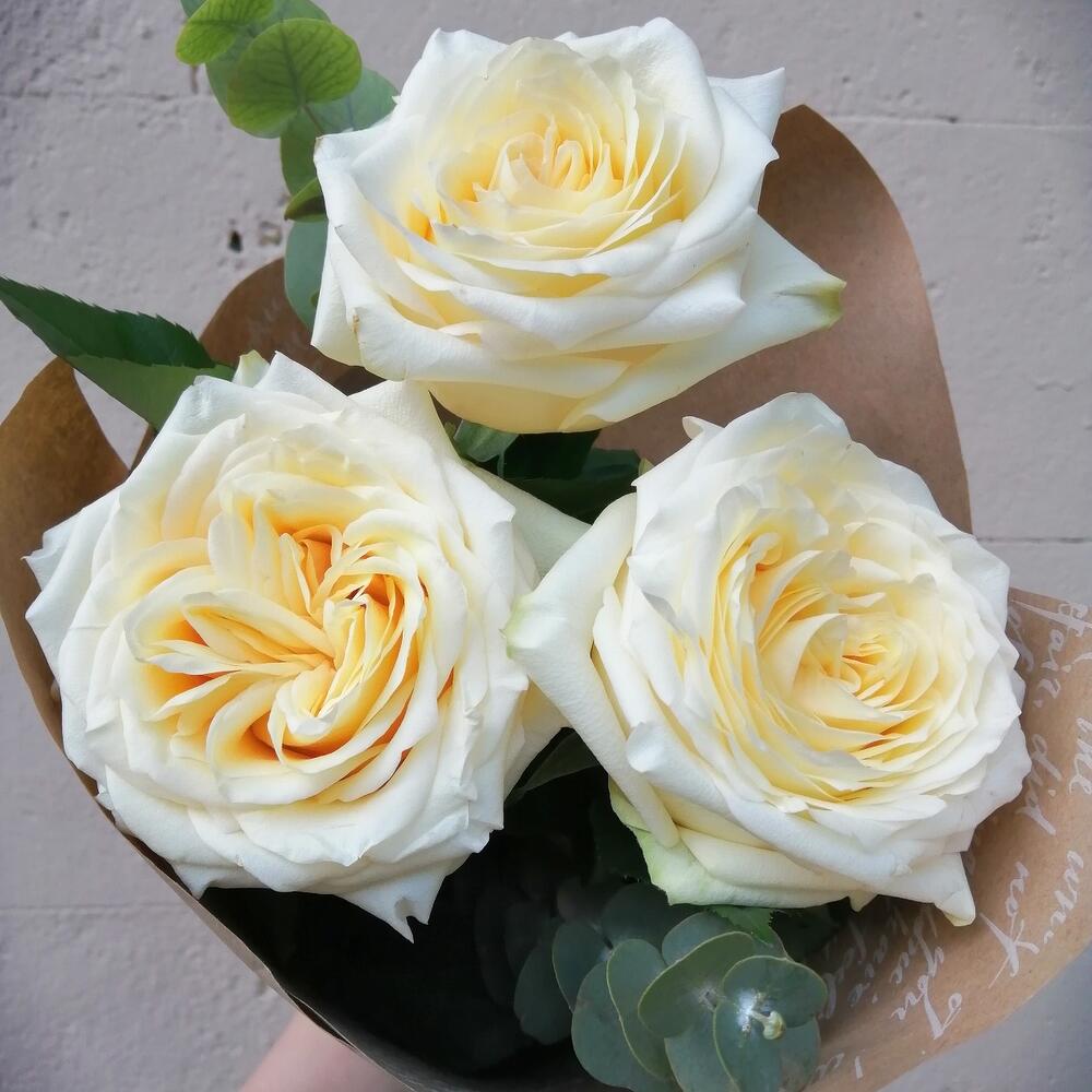 роза кендллайт – 3 шт.Эвкалипт – 1 шт.Упаковка крафт – 1 шт.Лента – 1 шт.