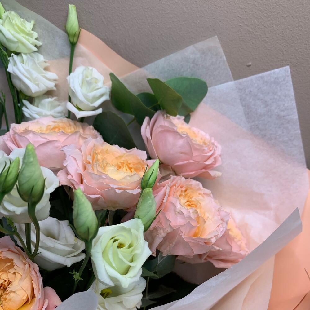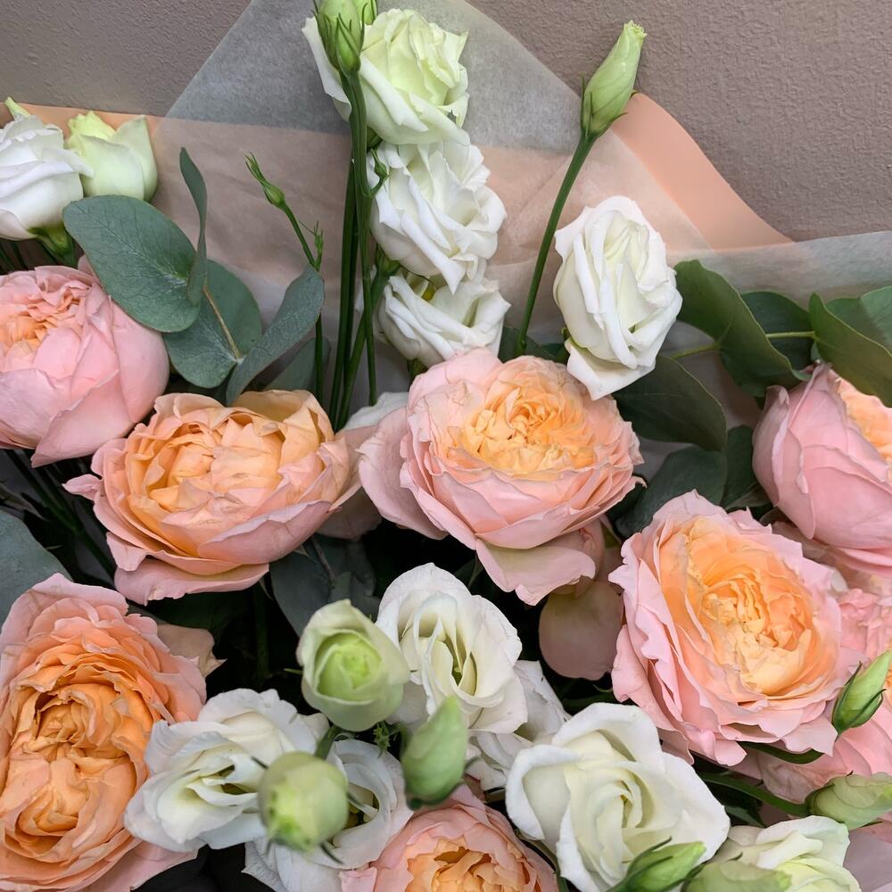 Альстромерии, Кустовые розы, Лизиантусы, Пионовидные розы, Розы, Ромашки