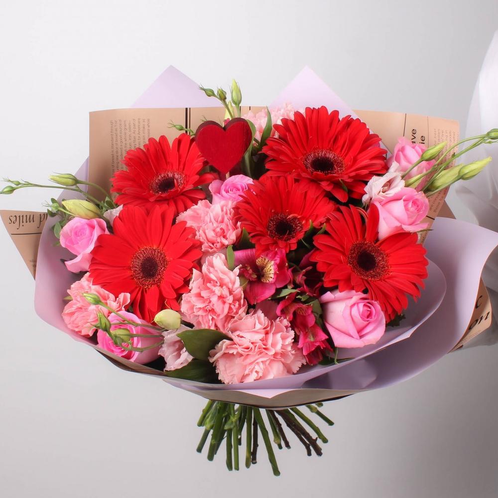 Категории: Гвоздики, Герберы, Лизиантусы, Розы