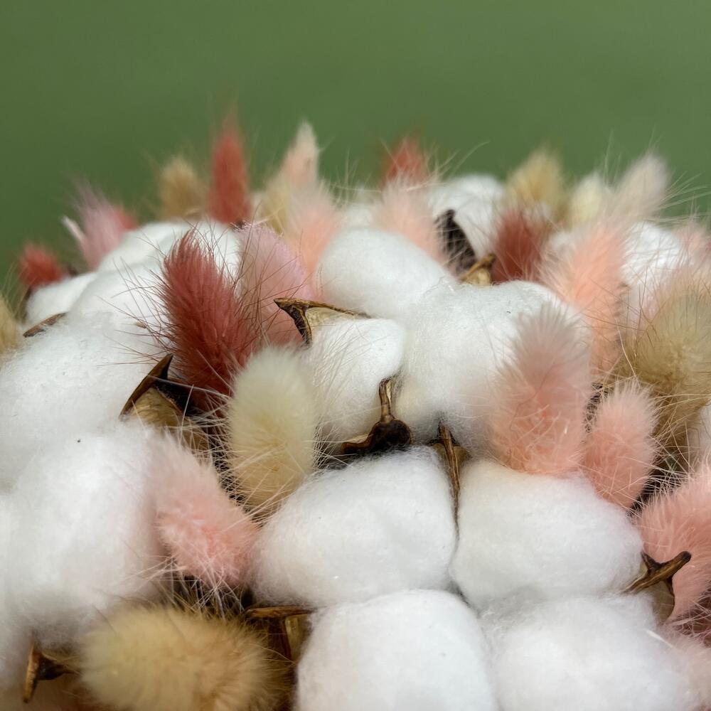 Тишью – 1 шт.Шляпная коробка – 1 шт.Оазис сухой – 1 шт.хлопок белый – 15 шт.банч лагуруса – 1 шт.