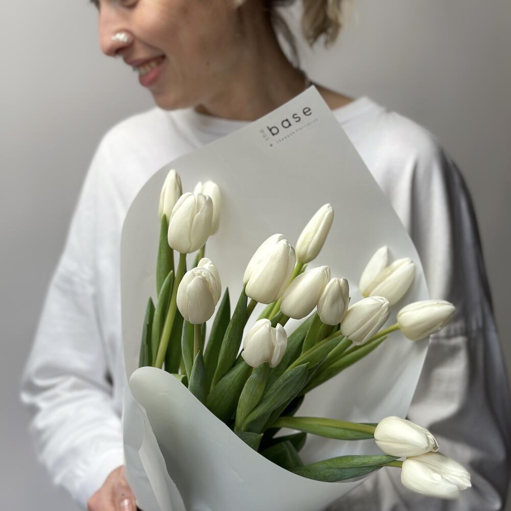 Монобукет из 15 классических белых тюльпанов