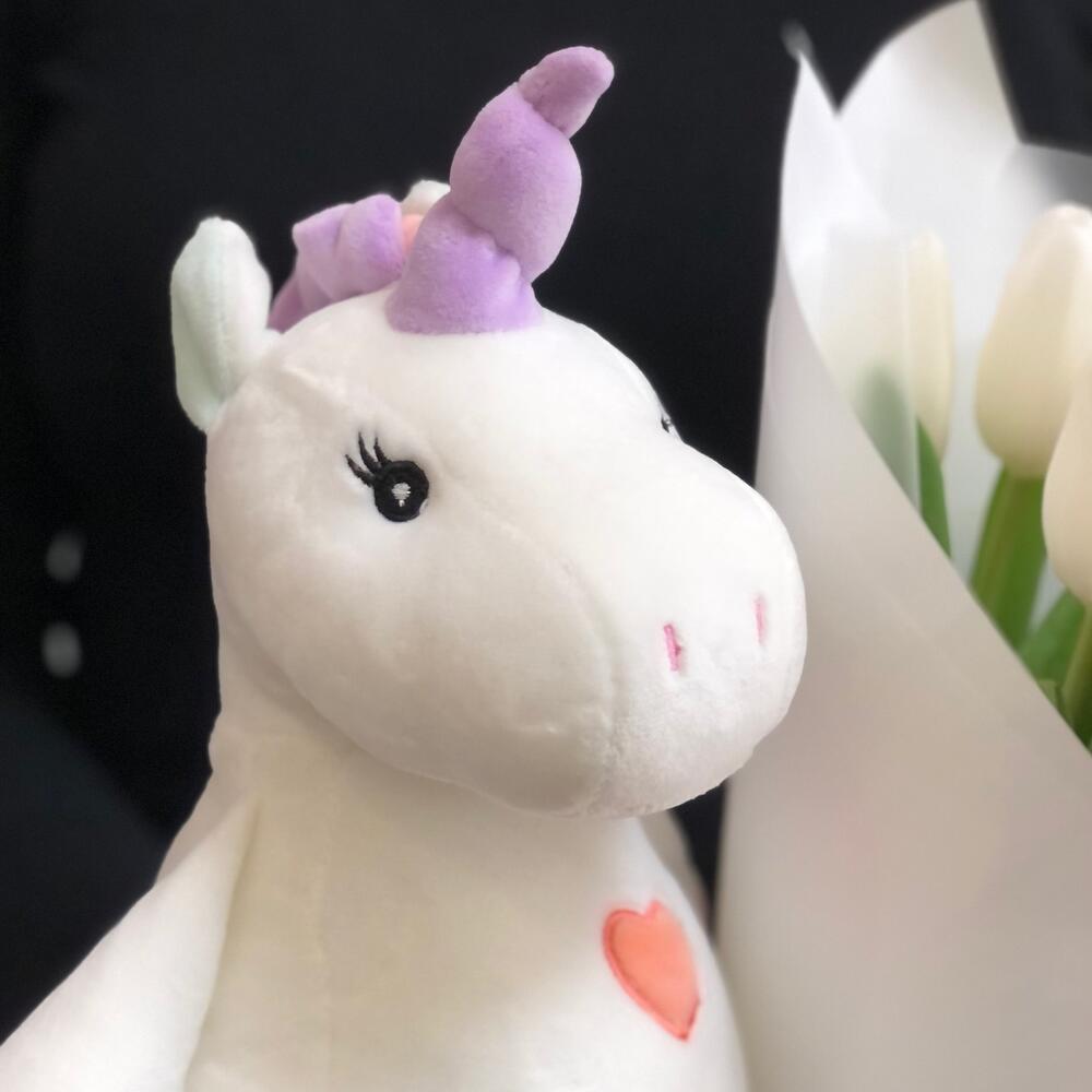 Набор: букет тюльпанов и мягкая игрушка «Единорог»