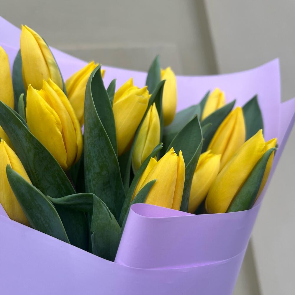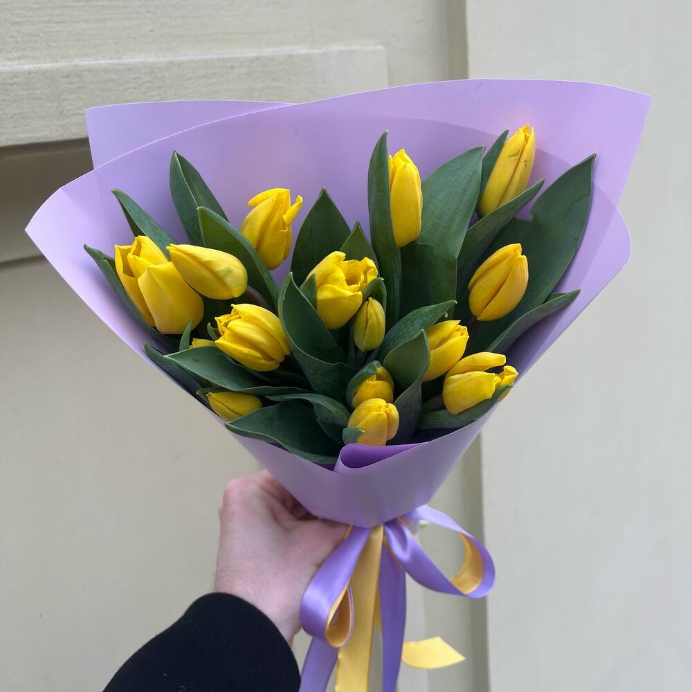 Тюльпан желтый – 15 шт.Упаковка корейская пленка – 1 шт.